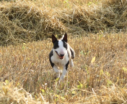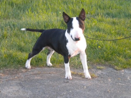 Ich bin die erste Miniatur Bullterrier Hündin von Torsten und Raphaela im Zwinger "With Sound of Joy". Ich bin ein so genannter "Second-Hand-Hund". Nachdem mich Roland und Birgitt zu meinen ersten Besitzern gegeben hatten und dies mit mir auch knapp 2,5 Jahre gut ging, wurde ich nach einer kleinen Auseinandersetzung mit einer "frechen Katze" und einem "großmauligen Streuner", die ich nur zur Raison gebracht habe, wieder abgegeben. Ihr hättet mich mal sehen sollen ... aber noch besser sahen meine Kontrahenten aus. :-)