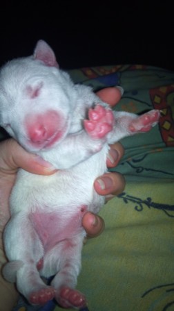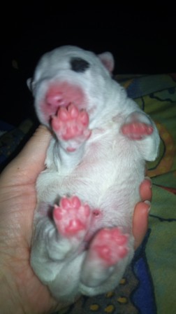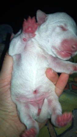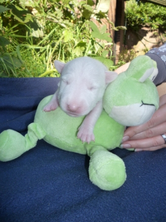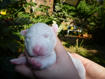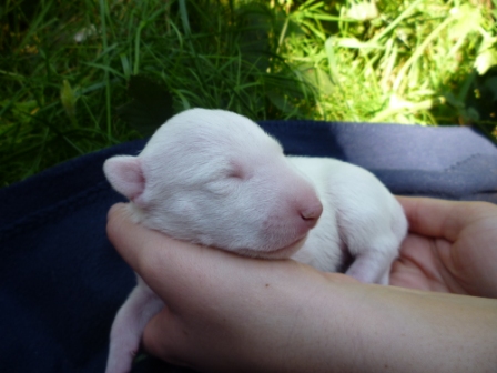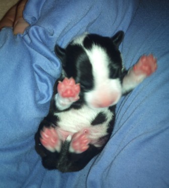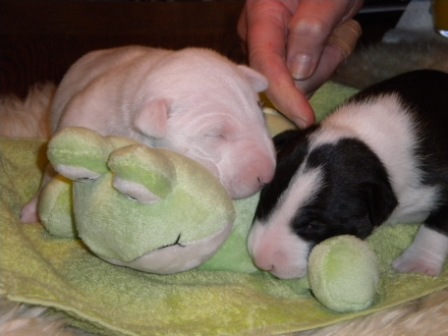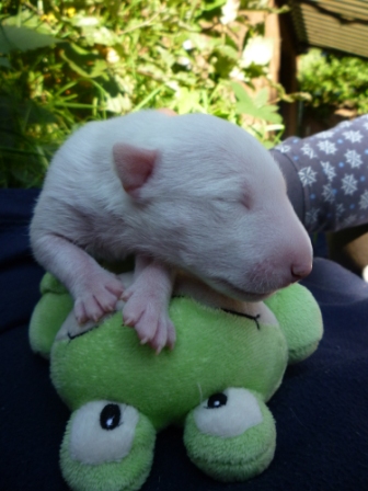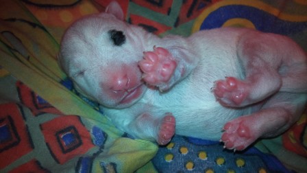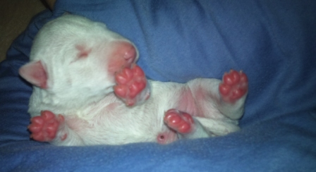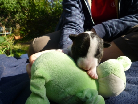 Wir sind jetzt 16 Tage alt, haben unser Geburtsgewicht verdreieinhalbfacht und beginnen so langsam zu laufen und die Äuglein zu öffnen...