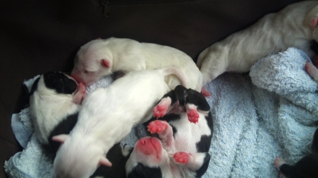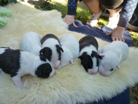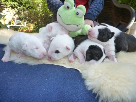 Jetzt sind wir sechs süßen Mäuse genau 8 Wochen alt und werden nach und nach das gewohnte und lieb gewonnene Nest, unsere Geschwisterchen, die beste Hundemutti der Welt und unsere Familie verlassen müssen... Aber wir haben ganz tolle neue Eltern und Freunde gefunden und freuen uns schon auf die kommende und spannende Zeit. Unsere Familie um Torsten und Raphaela bedankt sich bei allen neuen Besitzern für das Vertrauen und die schönen Momente in den letzten Wochen und wünscht uns kleinen Rackern und unseren neuen Eltern alles Gute und viel Spaß, Erfolg und Gesundheit in unserer gemeinsamen Zukunft.